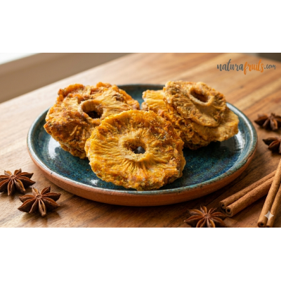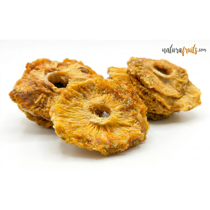 La piña a rodajas está preparada con piña fresca y madura. No contiene azúcar añadido ni sufitos. Es una fuente rica en fibra dietética, enzimas y antioxidantes.