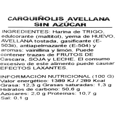 Carquiñolis de avellana sin azúcar añadido 0.150 kg