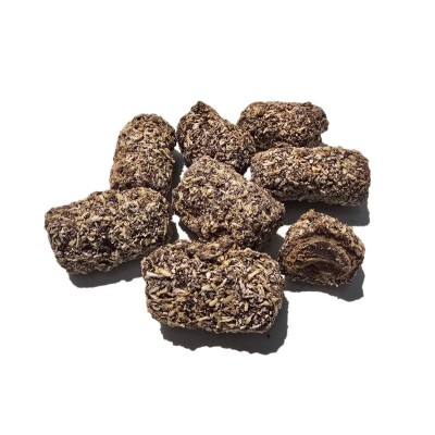 Fina galleta rellena y cubierta de delicioso chocolate negro con coco