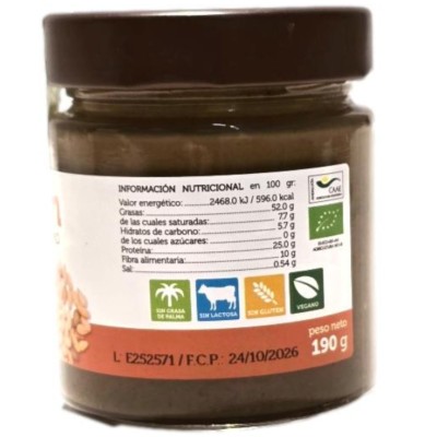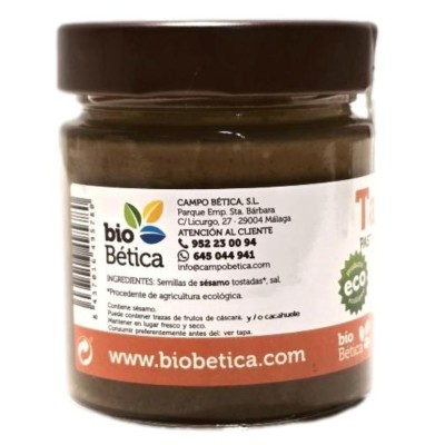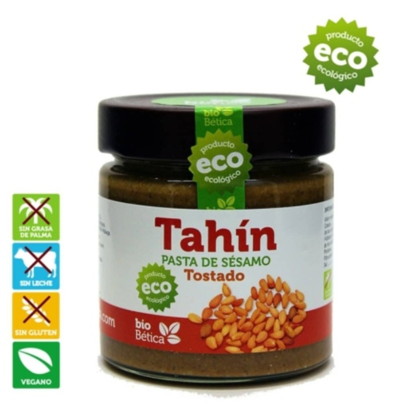 Tahine de gergelim torrado orgânico: pasta cremosa feita com sementes de gergelim torradas de cultivo orgânico, rica em proteínas, cálcio e gorduras saudáveis, ideal para passar no pão ou preparar homus e molhos.
